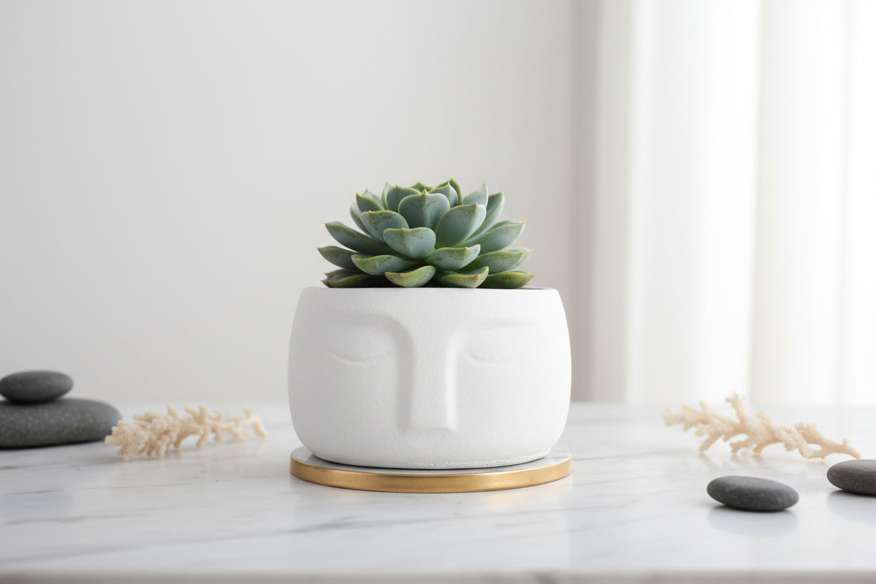 La Maceta Serenidad con Suculenta es el complemento ideal para añadir un toque de calma y naturalidad a cualquier ambiente. Su diseño único en forma de rostro tranquilo invita a la relajación, mientras que la suculenta, fácil de cuidar, mantiene vivo el espacio con frescura y color. Perfecta para quienes desean un elemento decorativo que inspire paz y estilo sin requerir mucho mantenimiento.